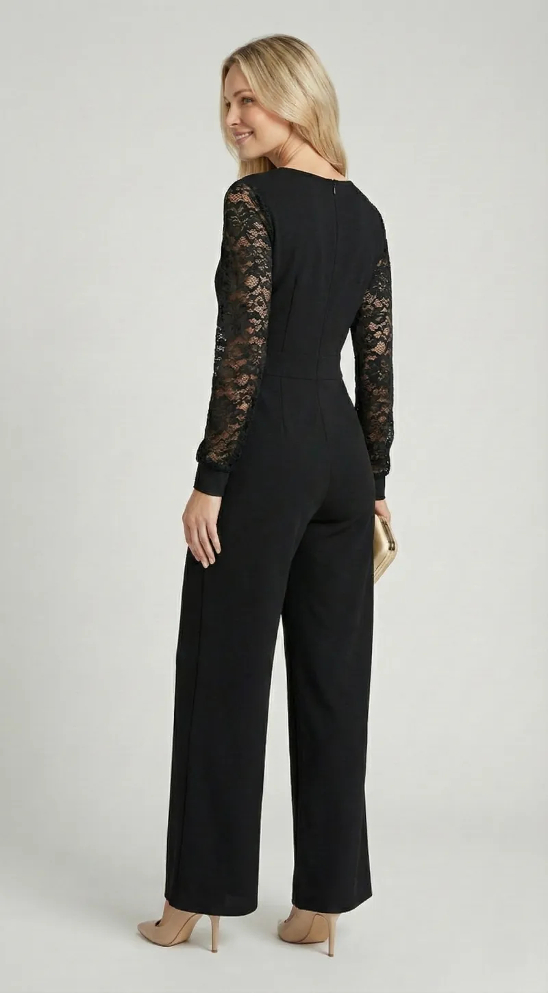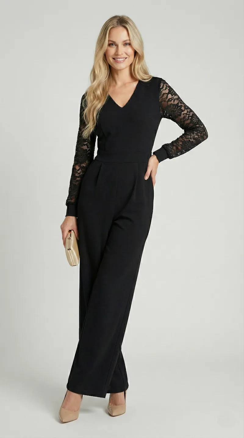 Le design de cette tenue est conçu pour mettre en valeur vos courbes avec un ajustement précis et flatteur. Les manches en dentelle ajoutent une touche de féminité et de romantisme, tandis que la coupe pantalon offre un aspect chic et moderne. La combinaison est facile à enfiler grâce à son ouverture pratique, offrant à la fois style et fonctionnalité. Vous pouvez la porter lors de nombreuses occasions, qu’il s’agisse de fêtes, de dîner ou même de soirées professionnelles.
