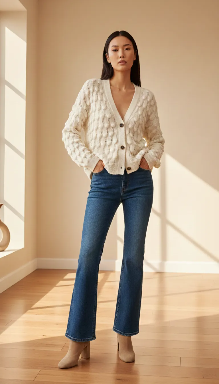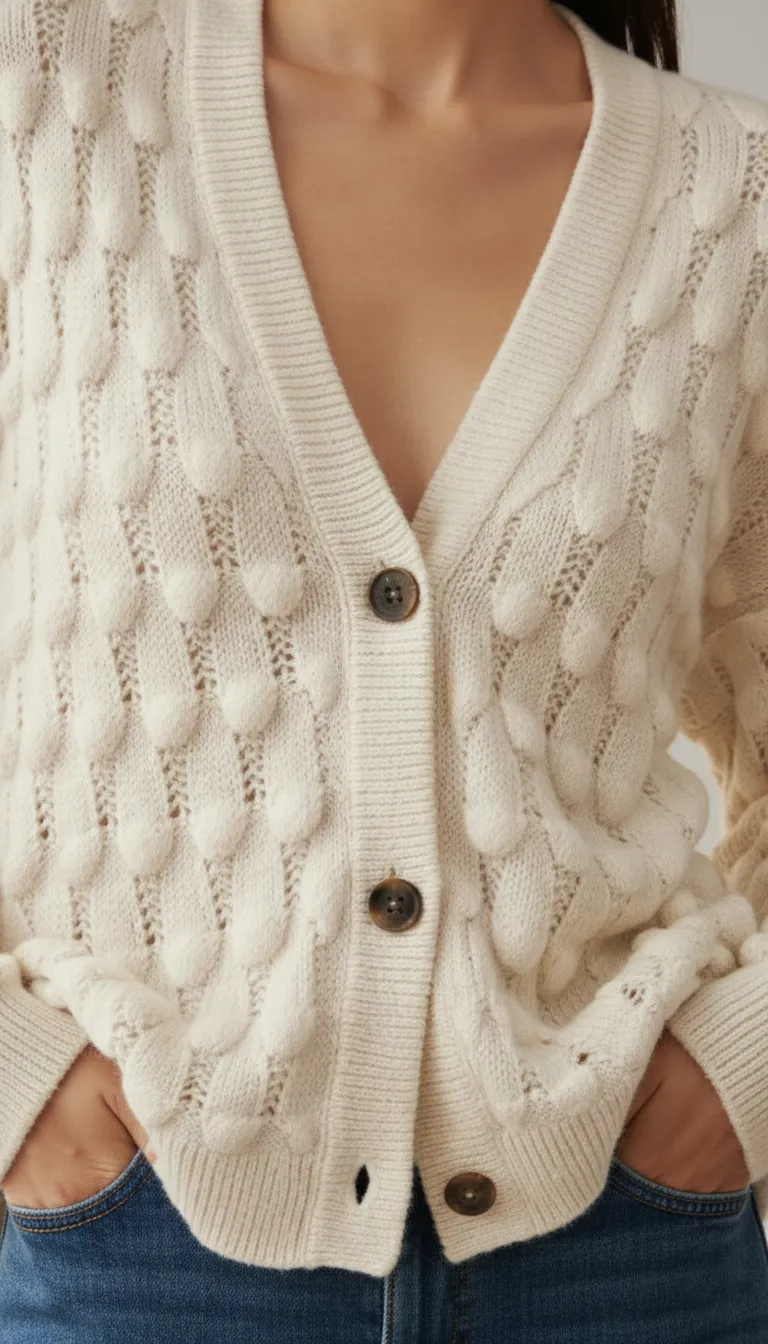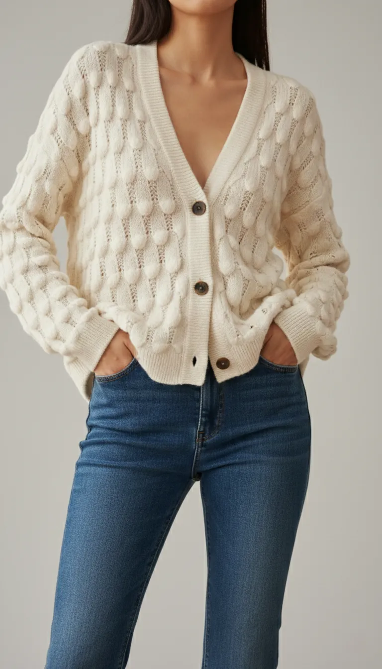 Le gilet maille texturée écru est conçu pour allier élégance et confort. Grâce à son design raffiné et sa couleur neutre, il s’intègre parfaitement à votre garde-robe tout en ajoutant une touche de sophistication à vos tenues.