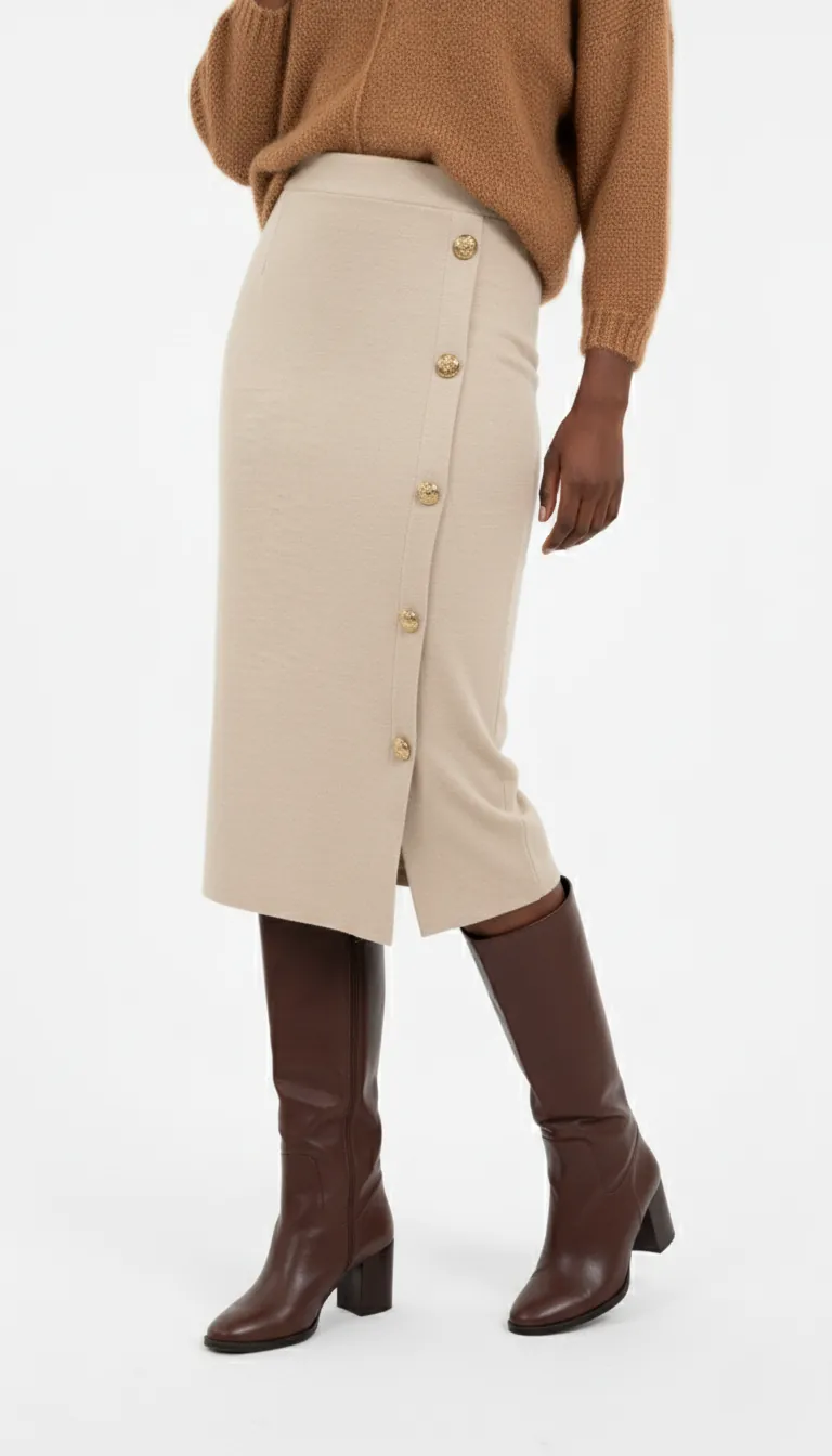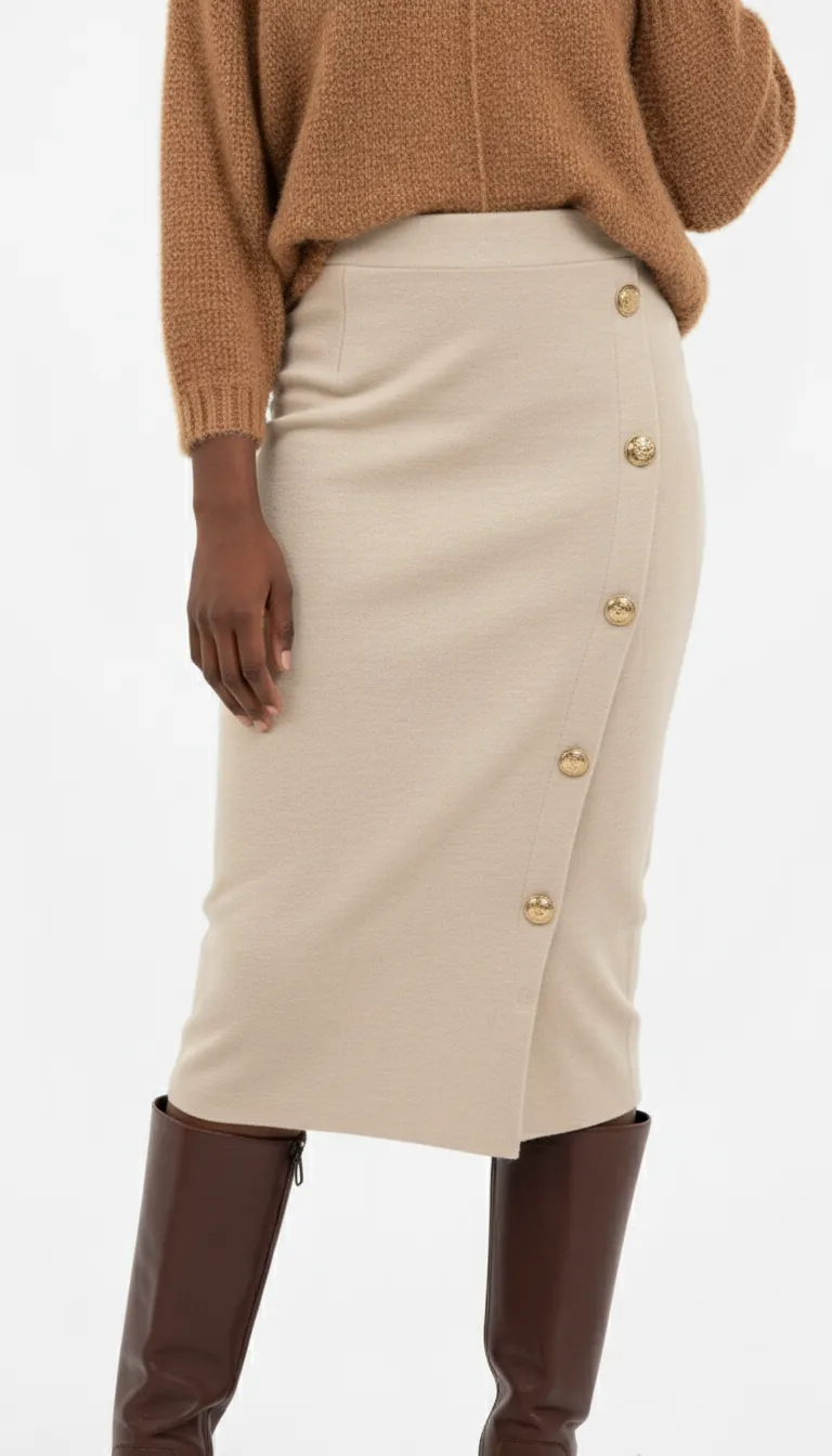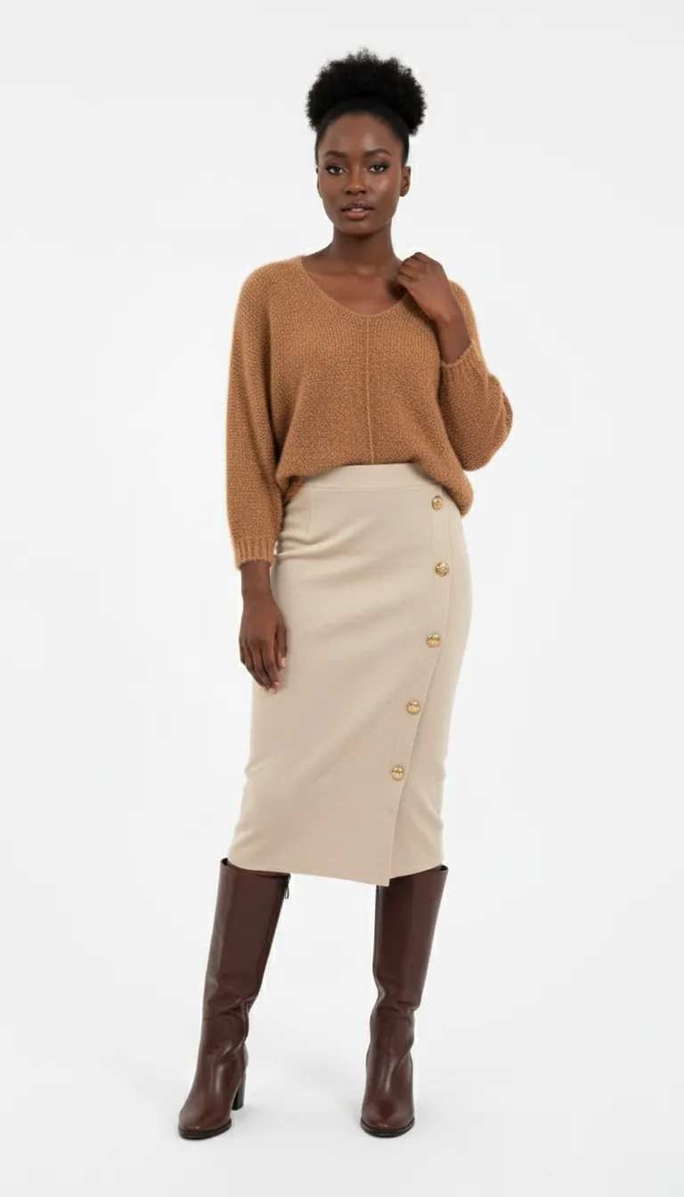 Attirez l’attention avec cette jupe femme midi beige et offrez-vous un style authentique qui met votre élégance en valeur. Dites adieu aux compromis entre confort et esthétique avec cette pièce incontournable.