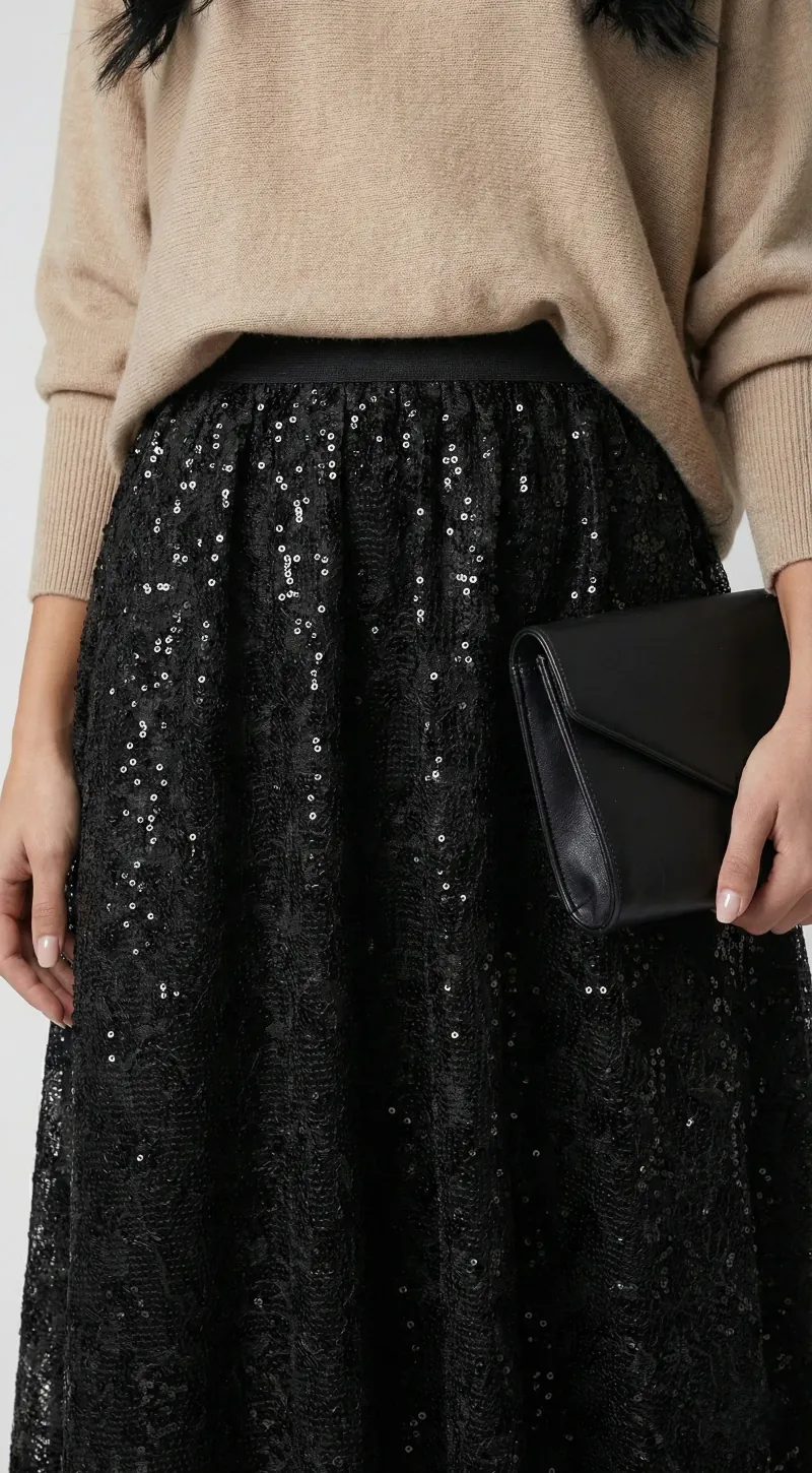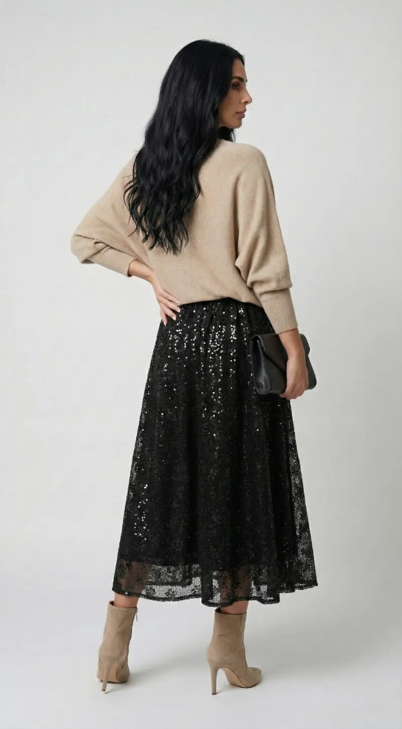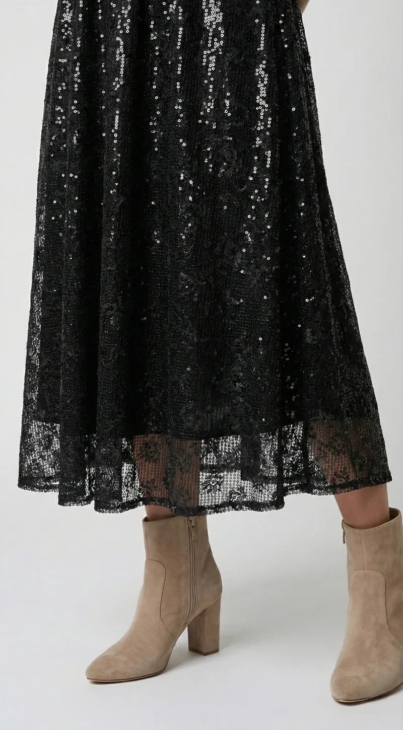 Avec son design soigneusement pensé, cette jupe est parfaite pour une variété d’occasions — des soirées élégantes aux événements spéciaux. Les sequins en fleurs reflètent délicatement la lumière, ajoutant une touche de brillance qui attire l’attention sans être ostentatoire. Sa longueur confortable lui confère un look chic adapté à tout moment, et son tissu de qualité premium garantit un port agréable tout au long de la journée ou de la soirée.