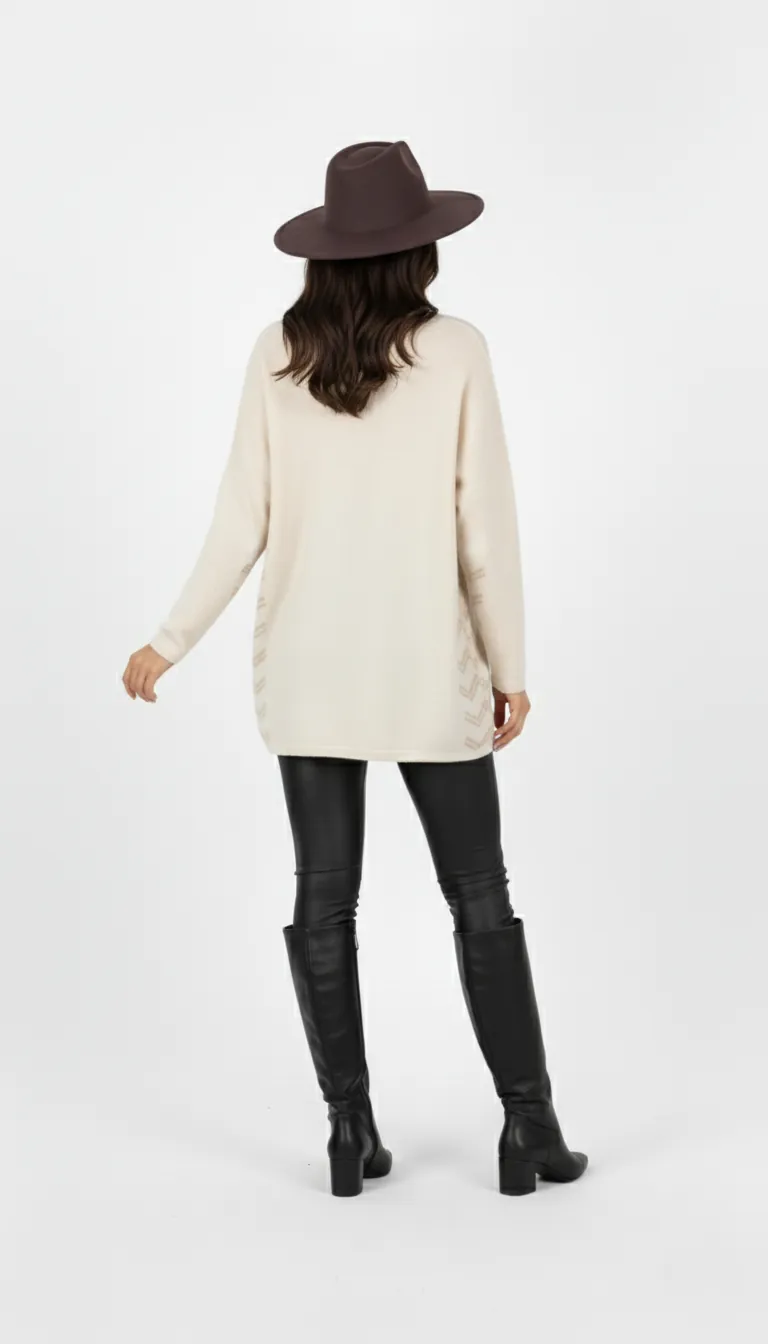 Look City : Associez-le à un legging en similicuir ou un pantalon très fit pour jouer sur l’opposition des volumes et laisser le pull s’exprimer pleinement.
