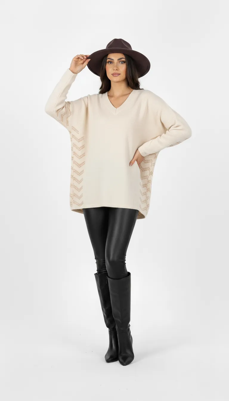 Découvrez notre magnifique pull ample femme col V en maille douce, conçu pour celles qui recherchent un équilibre parfait entre élégance et confort. Ce pull est idéal pour toutes les occasions, que ce soit pour une sortie décontractée entre amis ou pour ajouter une touche moderne et sophistiquée à votre tenue professionnelle. Avec ses bandes latérales discrètes et ses manches en dentelle raffinée, ce pull deviendra rapidement une pièce essentielle de votre garde-robe.